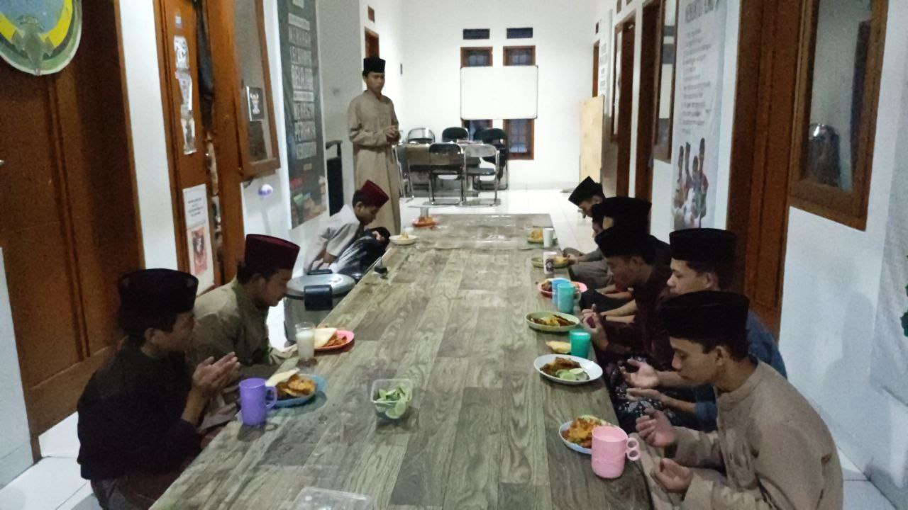 Suasana hangat dan persaudaraan terlihat jelas dari wajah para santri yang menunggu waktu berbuka dengan penuh antusias. Sebelum berbuka, mereka berdoa bersama yang dipimpin oleh salah seorang perwakilan santri, usai berdoa menikmati momen makan bersama-sama dengna temannya.