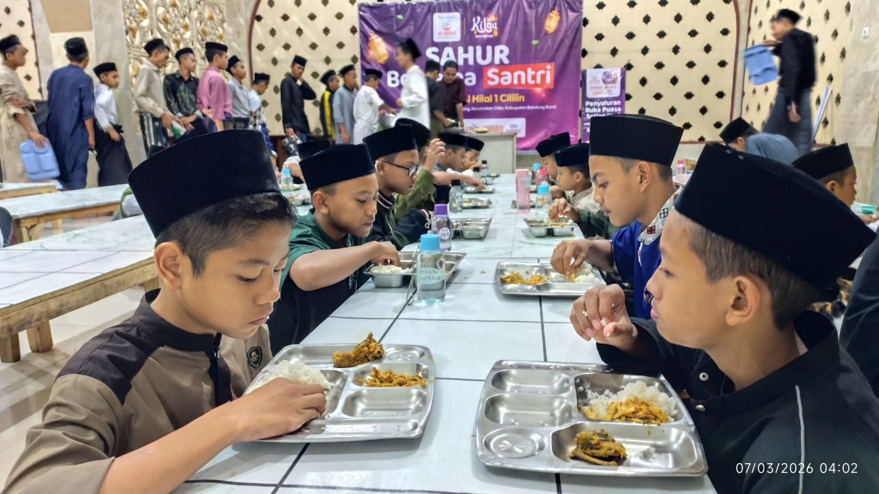 Selain Buka Puasa akbar di Pesantren Al Hilal 2 Cibiru, suasana hangat dan penuh kebersamaan juga terasa dalam kegiatan Buka Puasa Akbar yang diselenggarakan di Pesantren Al Hilal 1 Cililin. Kegiatan ini diikuti oleh santri mukim, santri Pesantren Ramadhan, serta para asatidz yang bersama-sama menikmati momen berbuka puasa pada bulan suci Ramadhan.