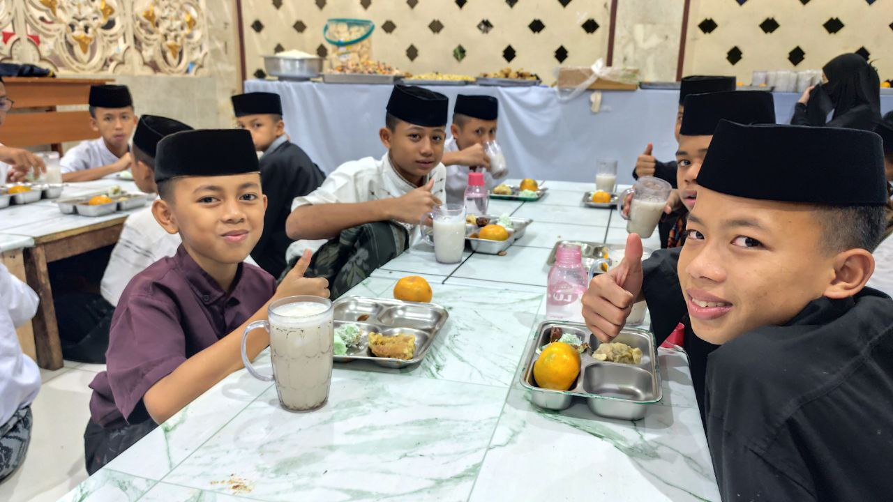 Momen berbuka puasa ini bukan sekadar menikmati hidangan, tetapi juga menjadi sarana pendidikan kebersamaan dan kepedulian. Para santri belajar tentang arti berbagi, menghargai nikmat Allah SWT, serta merasakan indahnya makan bersama dalam suasana kekeluargaan.