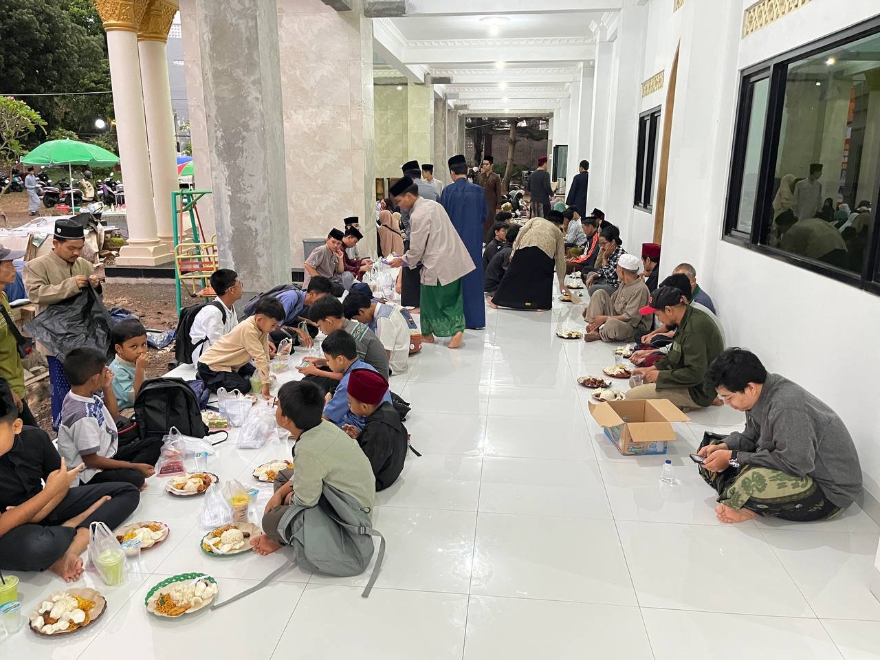 Kegiatan berbagi buka puasa ini tidak hanya menjadi momen untuk mengisi kebutuhan berbuka, tetapi juga menjadi sarana mempererat silaturahmi antara santri, pengurus pesantren, dan masyarakat sekitar. Kebersamaan yang tercipta di lingkungan masjid menghadirkan suasana Ramadhan yang penuh kehangatan dan kepedulian.