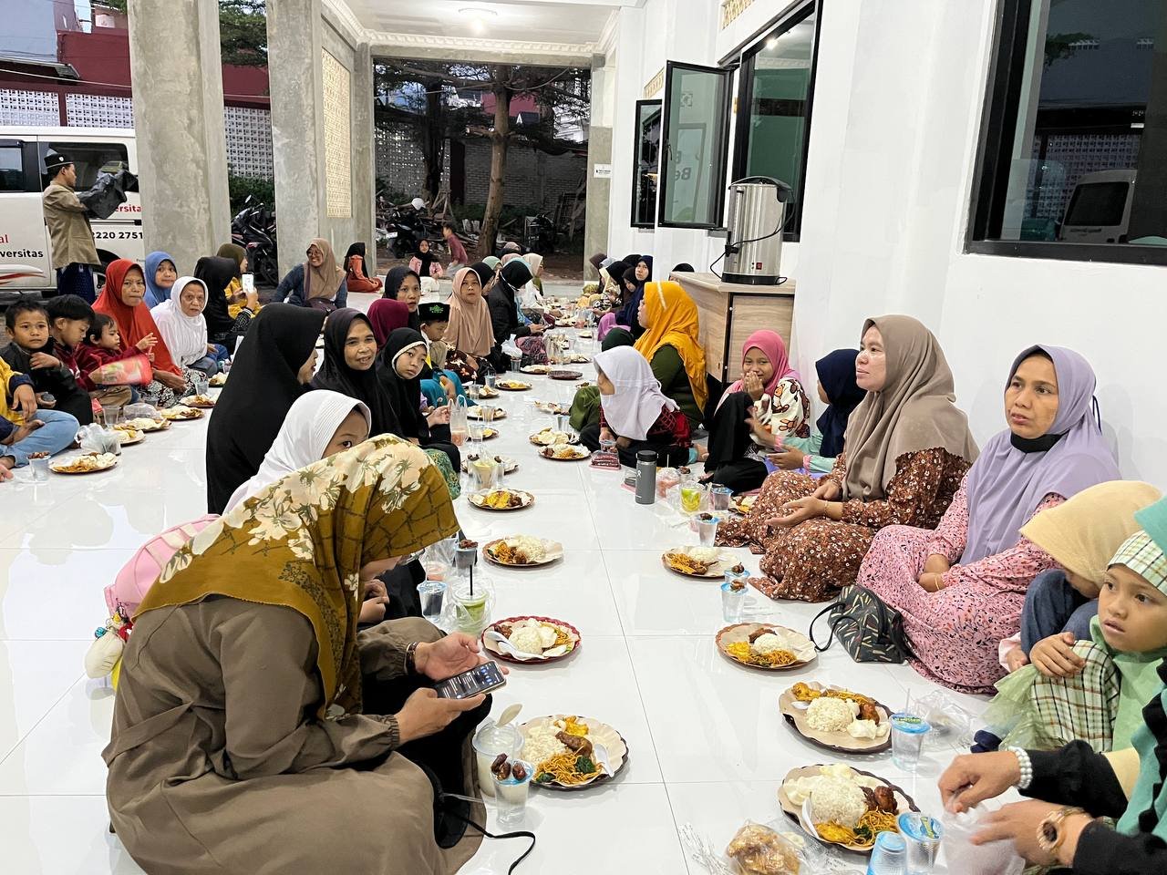 Tidak hanya warga sekitar yang hadir, beberapa pengendara sepeda motor yang sedang dalam perjalanan juga terlihat singgah di masjid untuk berbuka puasa. Kegiatan ini menjadi kesempatan bagi siapa saja yang membutuhkan untuk menikmati hidangan berbuka secara gratis sambil merasakan suasana kebersamaan di rumah Allah.