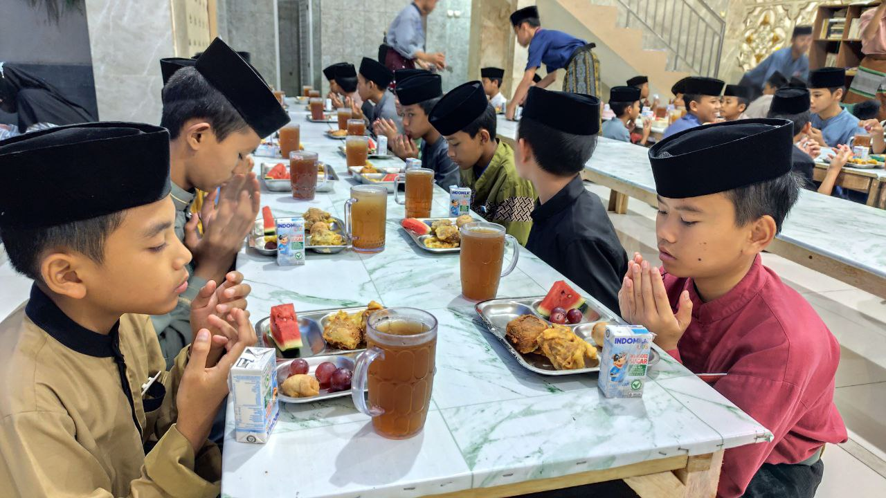 Menjelang waktu berbuka, para santri berkumpul dengan wajah cerah dan hati ikhlas. Setelah seharian berpuasa, mereka menikmati momen kebersamaan sambil berdoa yang dipimpin oleh salah satu santri. “Rasanya seneng bisa buka puasa bareng teman-teman dan ustadz, jadi puasanya gak kerasa dan rame,” ujar Muhammad HaniF, salah satu santri Pesantren Al Hilal 1 Cililin.