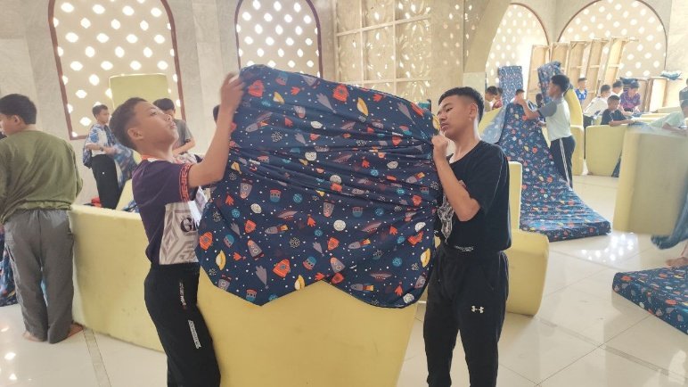 Berlokasi di Pondok Pesantren Al Hilal 1 Cililin yang terletak di Jalan Bonceret, Desa Rancapanggung, Kecamatan Cililin, Kabupaten Bandung Barat, suasana kegiatan tampak tertib dan penuh semangat. Sejak pagi hari, para santri telah diarahkan untuk melepas sprei dan handuk lama yang kemudian dikumpulkan secara rapi untuk dibawa ke tempat laundry pesantren.