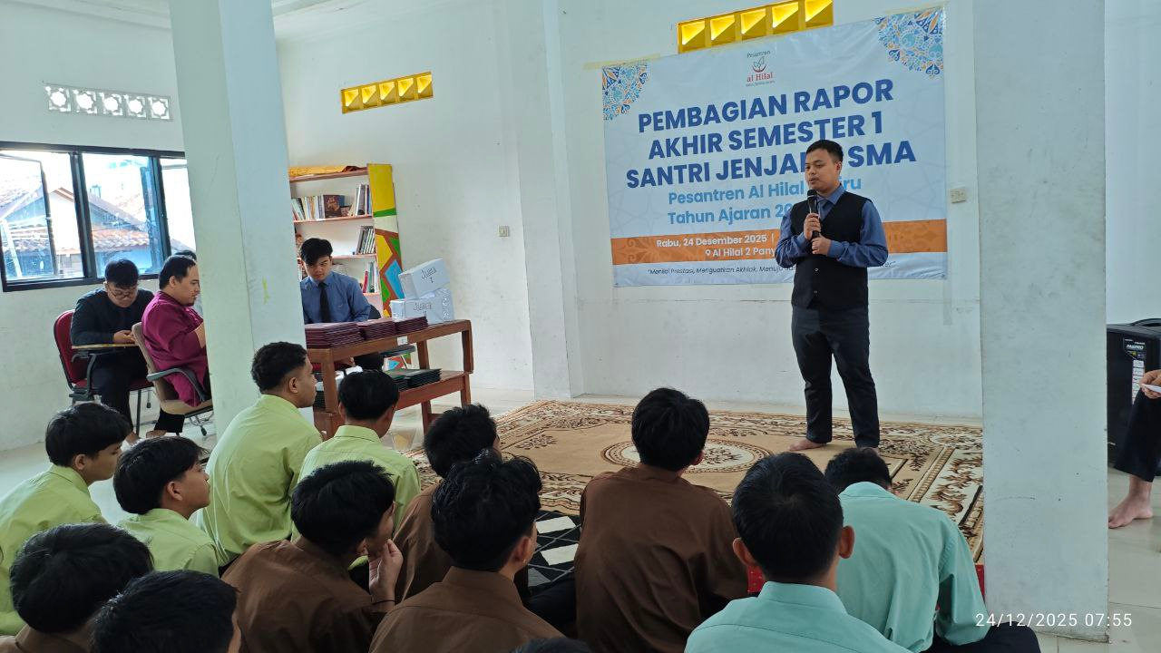 Alhamdulillah, santri Pesantren Al Hilal jenjang SMA kelas 10, 11, dan 12 telah menyelesaikan rangkaian Ujian Akhir Semester (UAS) Ganjil Tahun Ajaran 2025/2026 dengan baik. Pada Rabu, 24 Desember 2025, para santri pun menerima hasil belajar mereka melalui kegiatan Pembagian Rapor Akhir Semester Ganjil, yang menjadi momen penting dalam proses evaluasi pendidikan.