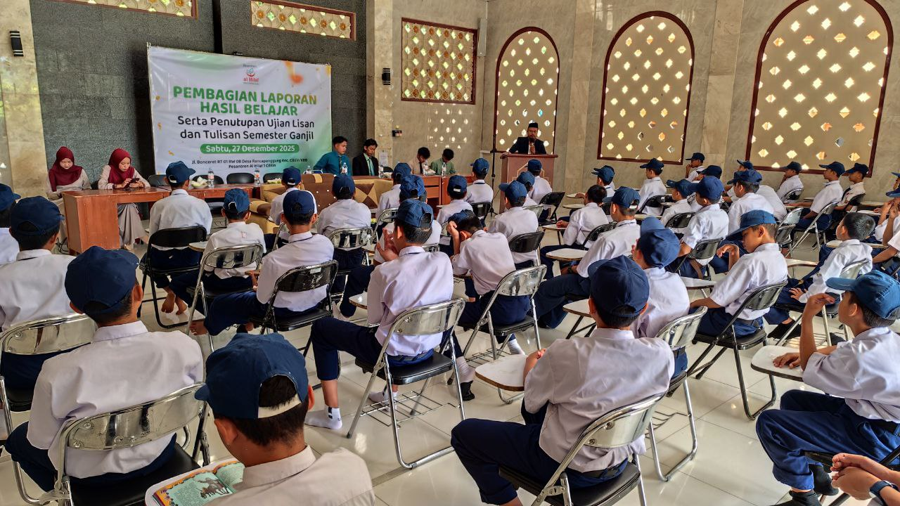 Alhamdulillah, santri kelas 7, 8, dan 9 Pesantren Al Hilal Cililin tingkat SMP telah menyelesaikan rangkaian Ujian Akhir Semester (UAS) Ganjil Tahun Ajaran 2025/2026 dengan baik. Pada Sabtu, 27 Desember 2025, para santri menerima hasil penilaian belajar selama satu semester melalui kegiatan Pembagian Rapor Akhir Semester Ganjil yang berlangsung dengan tertib dan khidmat.