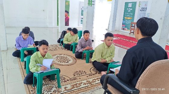 Selama proses pembelajaran berlangsung, para santri terlihat mengikuti kegiatan dengan tertib dan penuh perhatian. Interaksi antara pengajar dan santri berjalan secara aktif melalui tanya jawab serta penjelasan materi yang disampaikan secara bertahap. Suasana belajar yang kondusif ini diharapkan mampu mendukung pemahaman santri terhadap materi yang diajarkan.