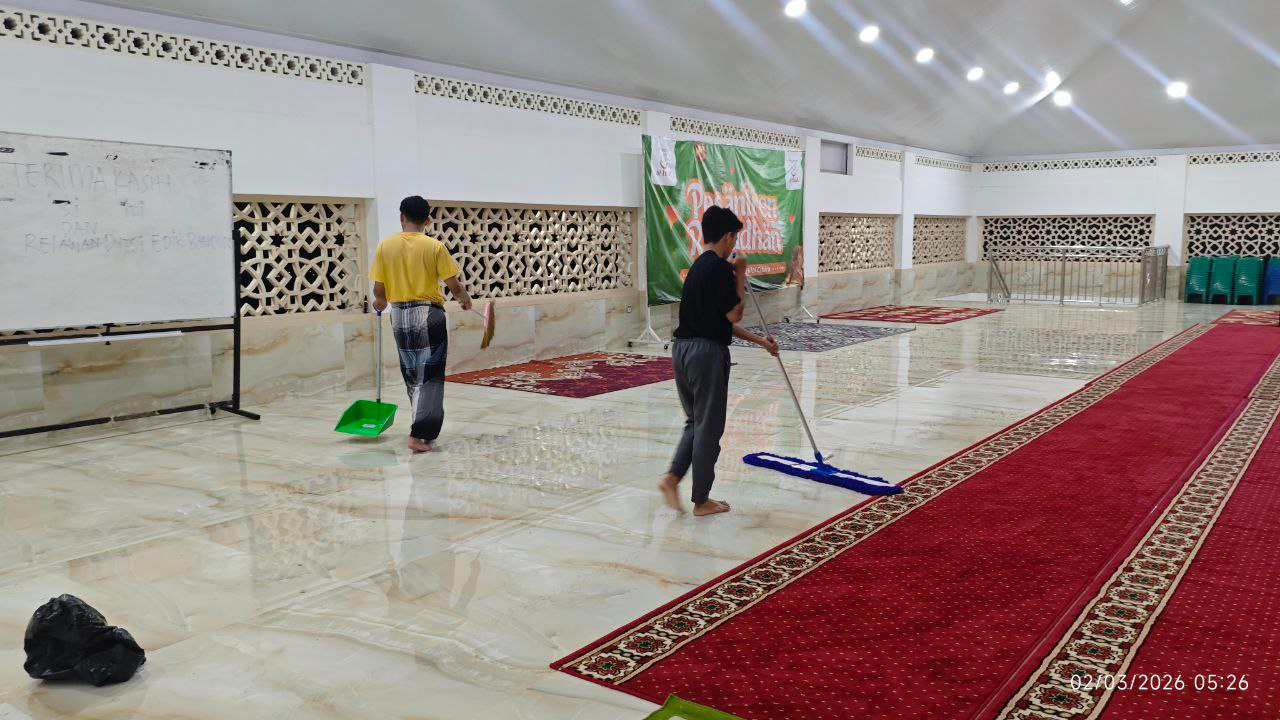 Setelah tadarus, para santri melanjutkan dengan piket kebersihan lingkungan pesantren dan masjid. Mereka bersama-sama membersihkan halaman, merapikan ruang belajar, serta memastikan area masjid tetap nyaman untuk digunakan beribadah. Kegiatan ini menanamkan nilai tanggung jawab, kerapian, dan kepedulian terhadap lingkungan.