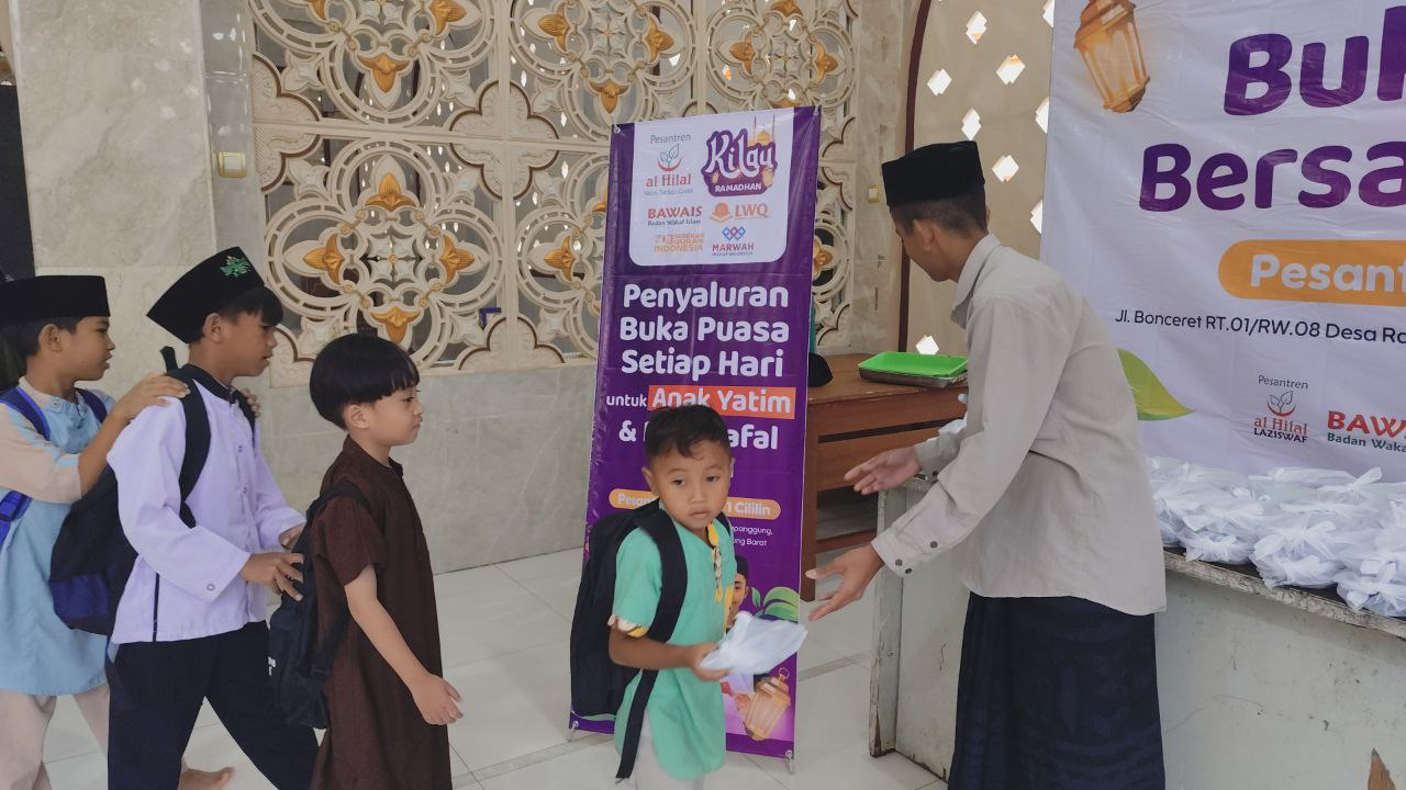 Usai kegiatan Pesantren Ramadhan, para santri juga menerima pembagian takjil. Momen berbagi ini menjadi pelengkap kebahagiaan hari itu, sekaligus bentuk perhatian agar santri dapat berbuka puasa dengan nyaman.