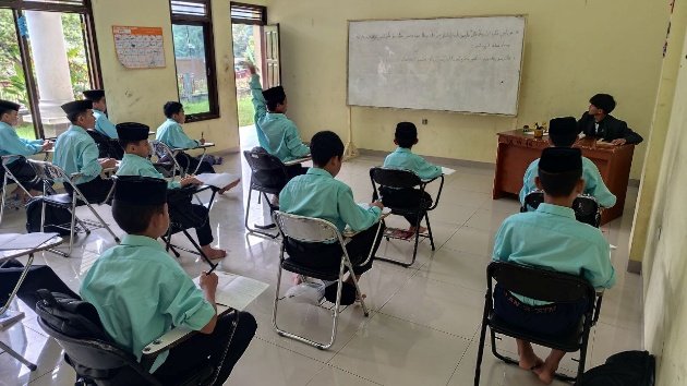 Suasana belajar di kelas terlihat kondusif dan penuh semangat. Para santri mengikuti pembelajaran dengan antusias, menunjukkan keseriusan mereka dalam menuntut ilmu. Para pengajar pun menerapkan metode pembelajaran yang komunikatif dan interaktif agar materi dapat dipahami dengan baik oleh seluruh santri.
